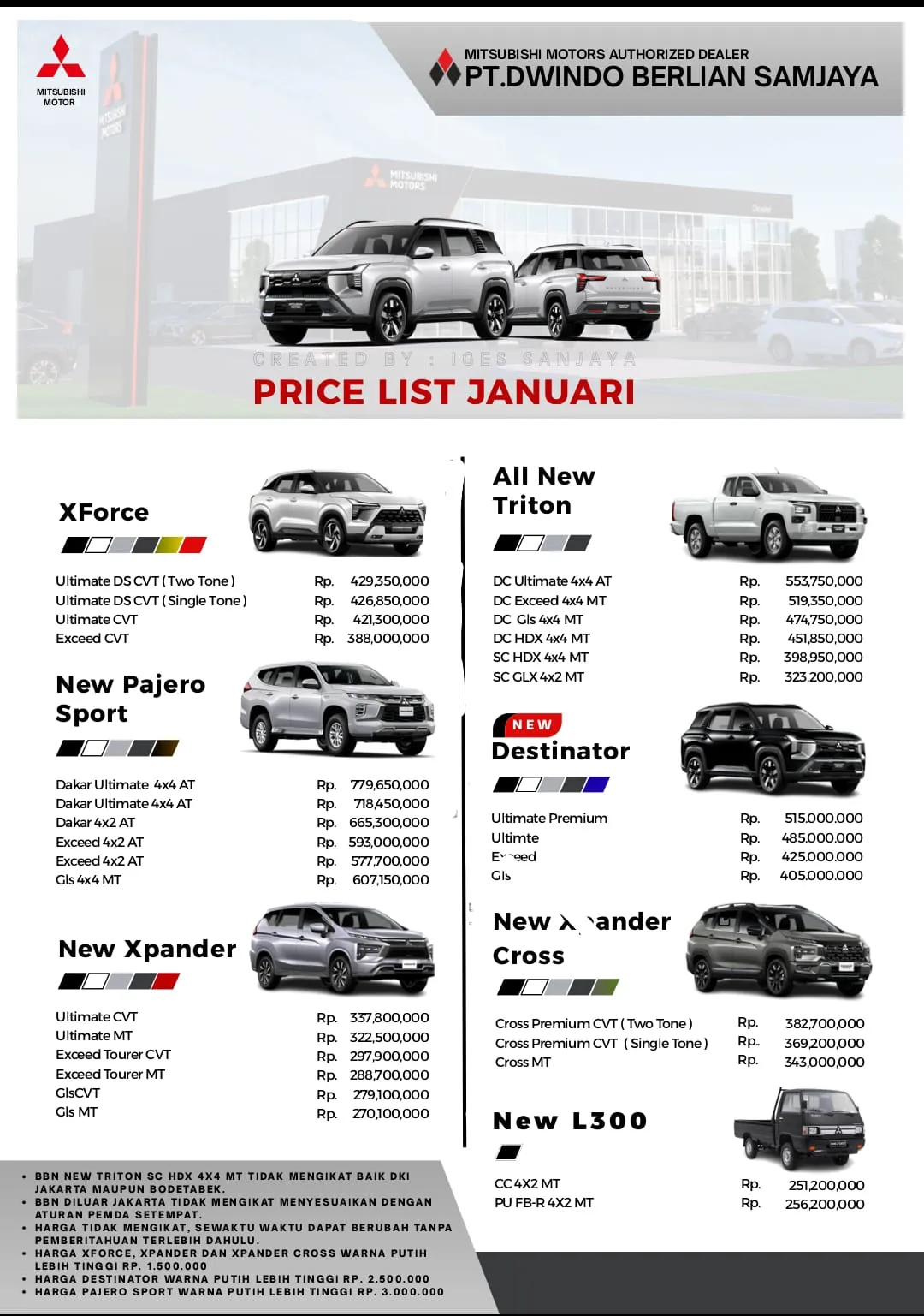 Dapatkan informasi harga Mobil Mitsubishi dengan promo istimewa :